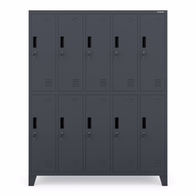 V sociálních místnostech záleží doslova na každém centimetru. Proto je v těchto prostorech nenahraditelná šatní skříň, která pojme oblečení a osobní věci zaměstnanců a zvýší komfort při používání. Skříň BHP BARTEK je kompaktní, a přesto má 10 schránek, které zlepšují organizaci a usnadňují udržování pořádku. Ideálně se hodí do dílen, firem, škol nebo fitness center a posiloven.