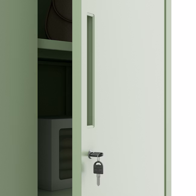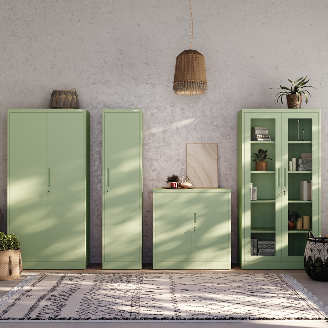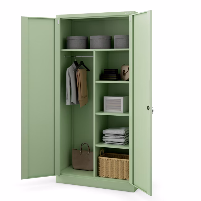 DAWID Metallschrank - praktische Funktionen im grünen Möbel verborgen