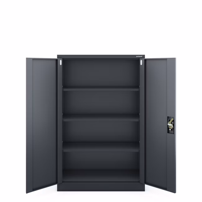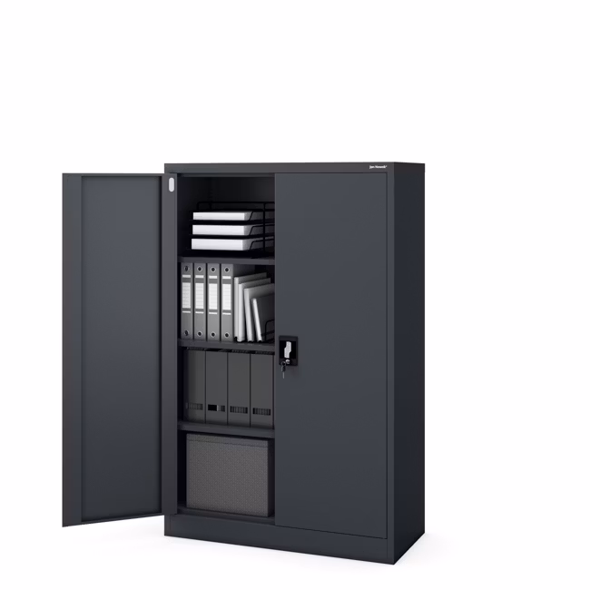 Der Metall-Aktenschrank ist mit einem zuverlässigen Schloss mit der 3-Punkt-Verriegelung ausgestattet. So lassen sich Dokumente mit personenbezogenen Daten, Wertsachen oder Medikamente sicher aufbewahren. Das Abschließen sorgt für volle Kontrolle darüber, wer Zugriff auf den Inhalt hat – und erfüllt damit die Anforderungen der DSGVO.