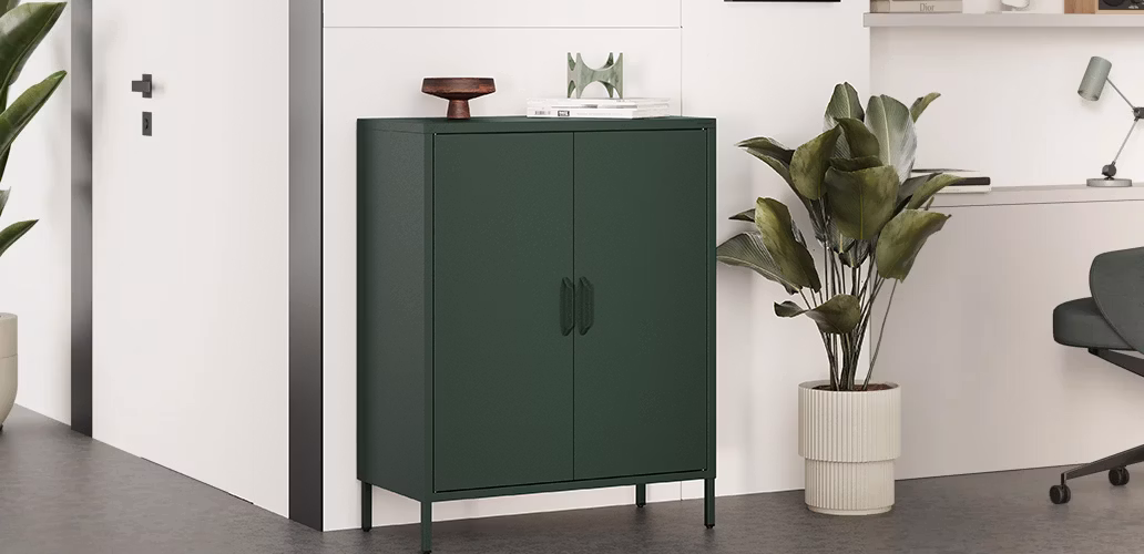 Der kleine Schrank mit Einlegeböden behält sein einwandfreies Aussehen, da es aus robustem Stahl mit der Stärke von 0,6 mm gefertigt ist. Die Sparkling Brilliance™ Farbe macht nicht nur einen besonderen optischen Eindruck, sondern macht das Möbel auch widerstandsfähig gegen mechanische Beschädigungen und Kratzer. Der Schrank mit Einlegeböden VITO ist eine solide und ästhetisch ansprechende Investition für viele Jahre.
