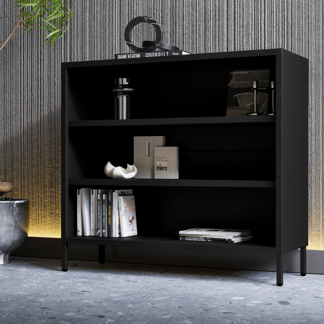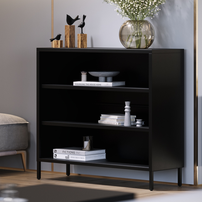 Das niedrige Metallregal LUCA mit Einlegeböden gehört zweifellos in jedes moderne Interieur. Dank seiner kompakten Maße passt es auch in kleinere Räume, während die großzügige Kapazität der Böden Ordnung und Übersicht schafft. Das schwarze Regal LUCA ist jedoch weit mehr als nur ein Aufbewahrungsmöbel für Bücher oder Deko – es ist ein echtes Schmuckstück. Es kommt in fast jedem Wohnbereich hervorragend zur Geltung und ist ebenso eine stilvolle Ergänzung für elegante Büros, Arztpraxen oder Kosmetikstudios – überall dort, wo Organisation mit Design Hand in Hand gehen soll.