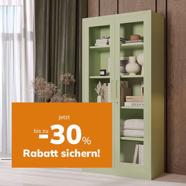 Vom 13.09 bis 6.11 kannst du ausgewählte Metallschränke zu außergewöhnlichen Preisen kaufen – mit Rabatten von bis zu -30%!