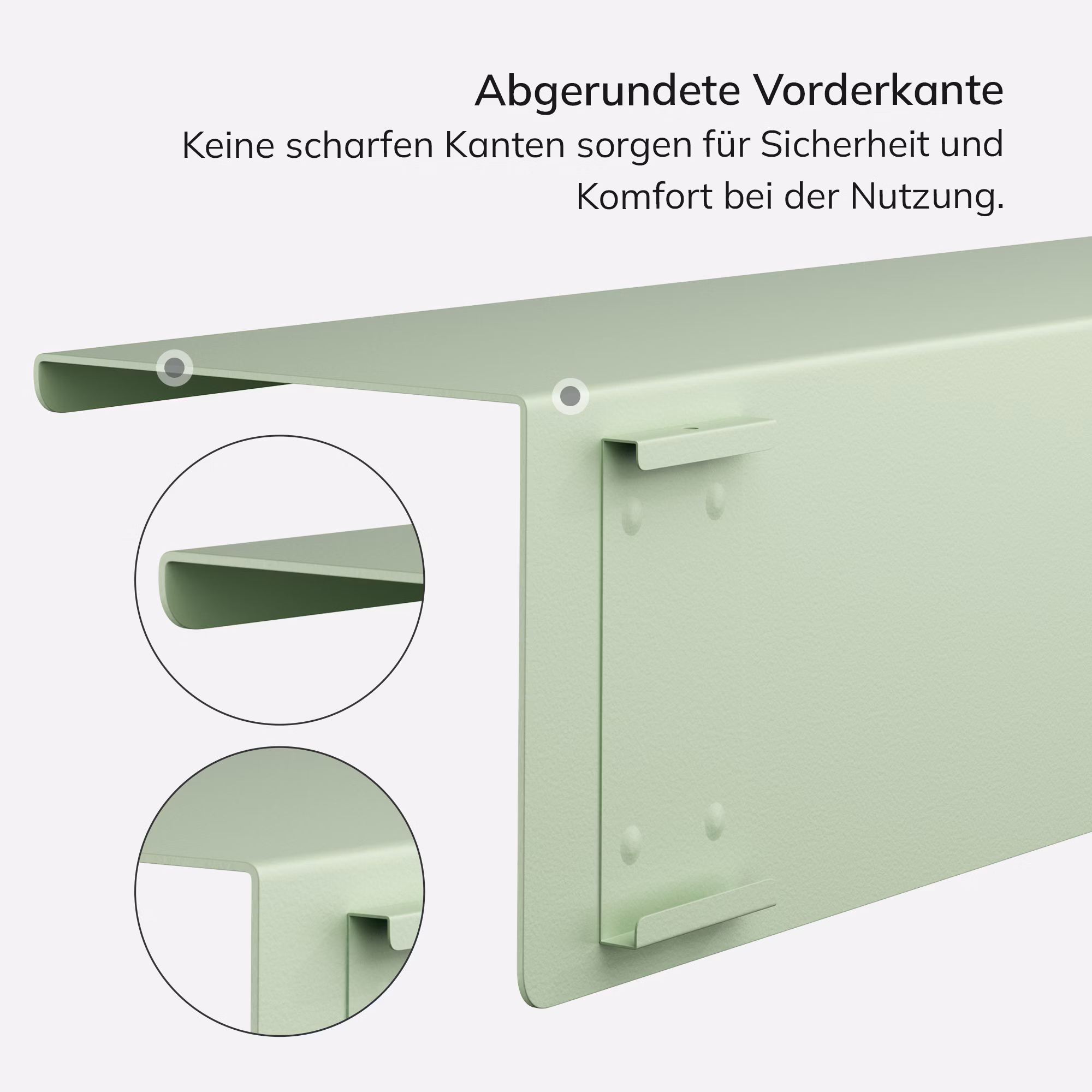 Die Metall-Wandplank JOANNE in Pastellgrün ist ein zarter, stilvoller Akzent, der jedem Raum eine frühlingshafte Leichtigkeit und Frische verleiht. Ihre dezente Farbgebung passt sowohl zu minimalistischen als auch zu gemütlichen Einrichtungen. Ideal als Ablage für Dekorationen, Bücher oder kleine Accessoires – perfekt für Zuhause, moderne Büros und Arbeitszimmer.
