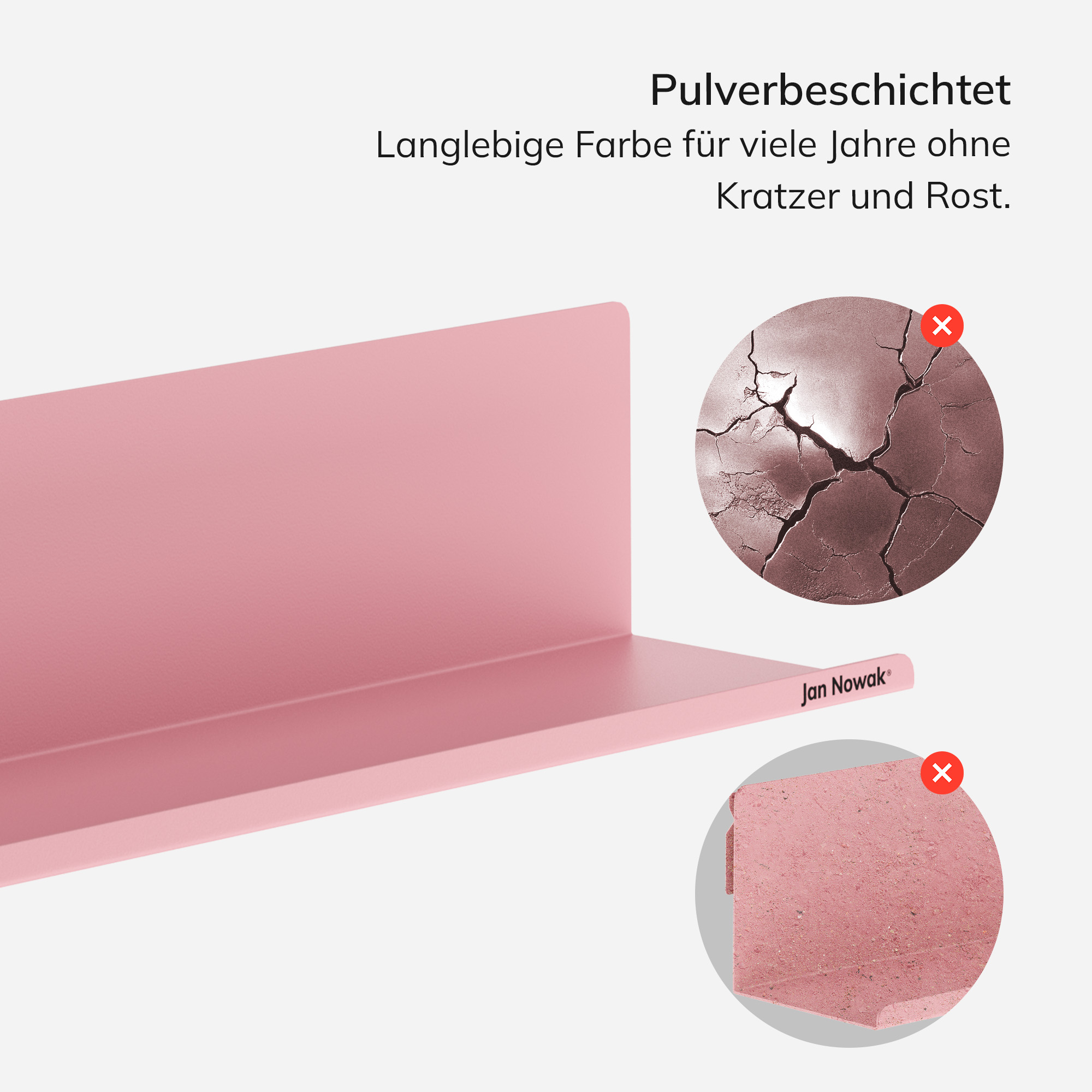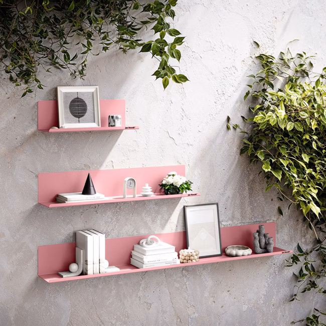 Die metallene Wandplank JOANNE in Puderrosa ist ein subtiler Akzent, der Räume wärmt und ihnen eine zarte Eleganz verleiht. Ihr pastellfarbener Ton passt perfekt zu modernen Einrichtungen und harmoniert ideal mit skandinavischen oder glamourösen Interieurs. Sie ist unverzichtbar nicht nur im gemütlichen Zuhause, sondern auch im Büro oder Arbeitszimmer. Ein idealer Platz für Bücher, Dekorationen, Fotorahmen und praktische Accessoires.