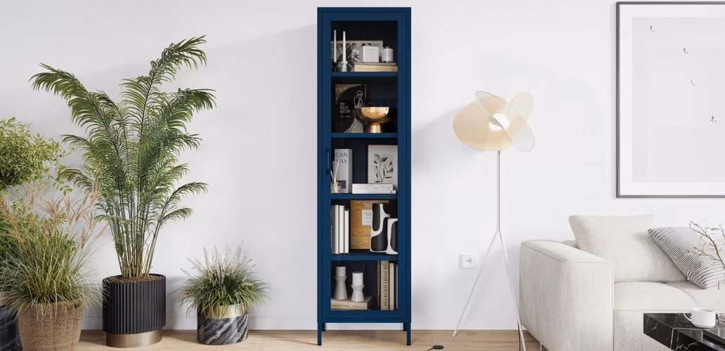 Die schmale Glasvitrine LUIGI verleiht jedem Raum einen besonderen Charakter. Sie eignet sich perfekt zum Präsentieren von einzigartigen Gegenständen, Familienandenken oder elegantem Geschirr. Der Metallrahmen ist widerstandsfähig gegen Kratzer, während die Sparkling Brilliance™-Farbe alle Blicke auf sich zieht. Dank der schmalen Konstruktion passt sie hervorragend auch in kleinere Wohnzimmer.