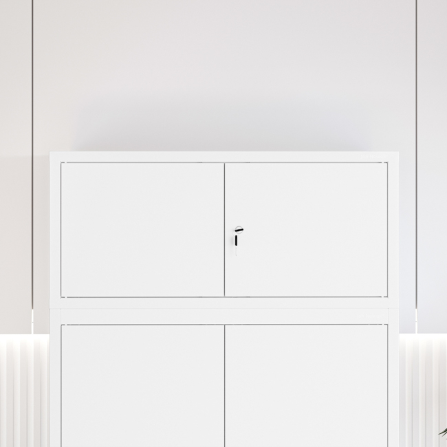 El módulo metálico ofrece mucho espacio para guardar objetos de uso menos frecuente, como documentos, archivadores o ropa de trabajo. Es la solución ideal cuando se necesita un espacio de almacenamiento adicional pero seguro. El modelo EWA Compact está equipado con una cerradura sólida con llave que protege el contenido del acceso de personas no autorizadas y mejora la seguridad del entorno.