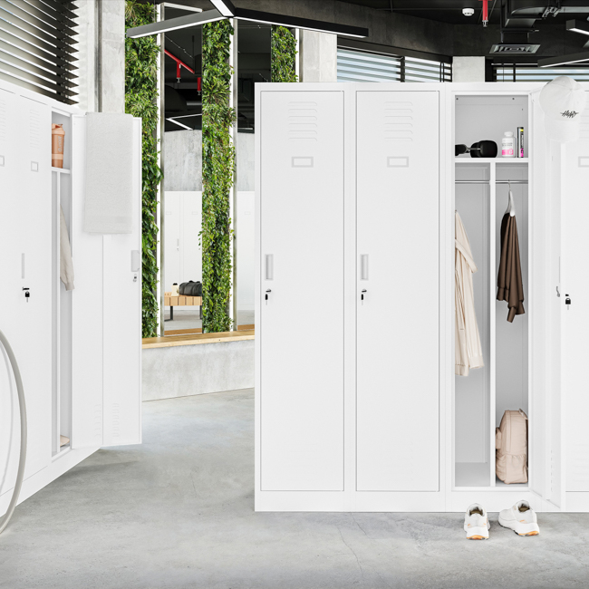 L’armoire métallique KACPER est parfaite pour ranger vêtements, chaussures, outils ou objets personnels. Ses compartiments pratiques permettent d’organiser efficacement l’espace, que ce soit sur un lieu de travail, dans une salle de sport, un club de fitness, une clinique, un cabinet médical ou un atelier. L'avantage de l'armoire est sa taille compacte et sa parfaite adaptation à chaque espace. Grâce à l’armoire KACPER, garder un environnement bien rangé devient extrêmement facile.