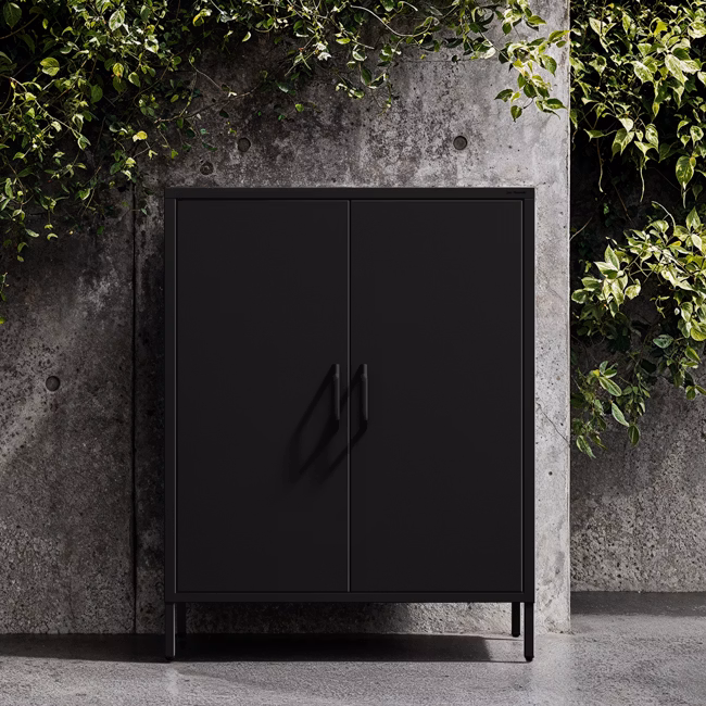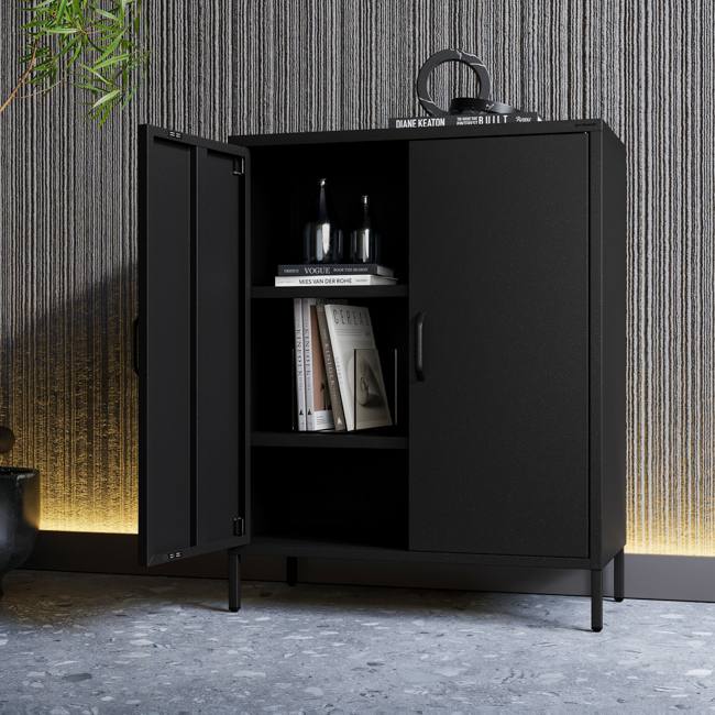 Armoire noire avec étagères sur pieds en métal VITO Modern 800 x 1015 x 400 mm