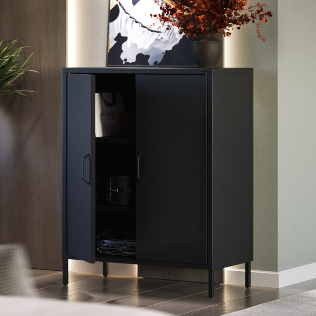 Armoire noire avec étagères VITO – fonctionnalité au style décoratif