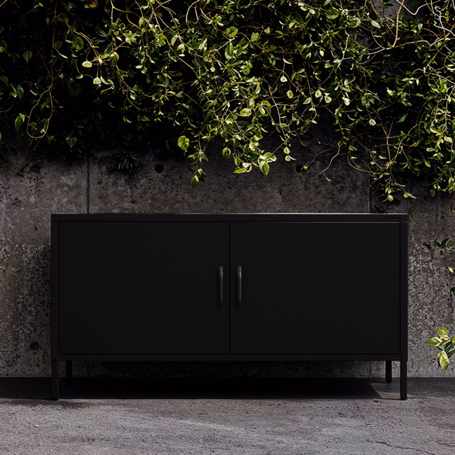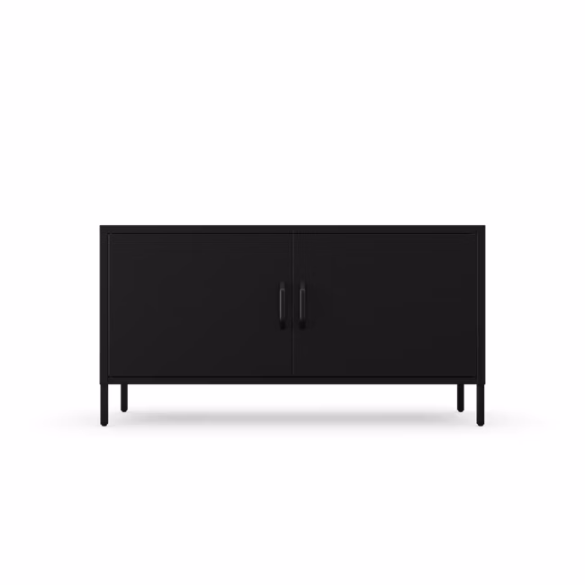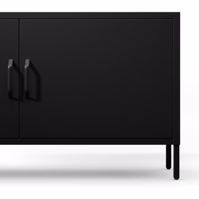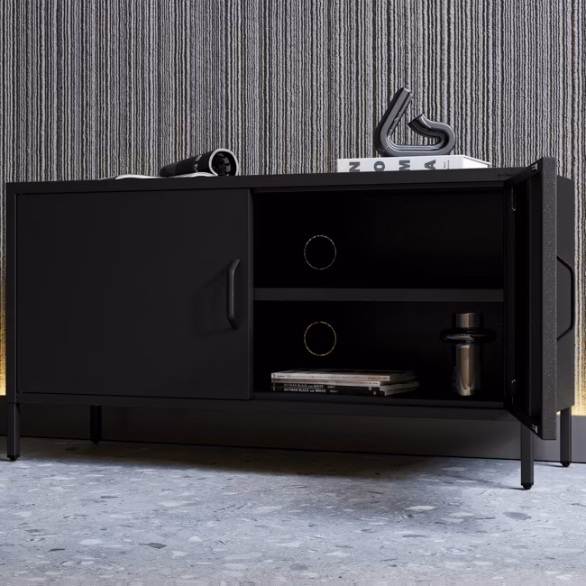 Metalowa szafka RTV ROSA powstała z wysokiej jakości stali o grubości 0,6 mm, która gwarantuje odporność na wgniecenia i uszkodzenia. Czarna farba Sparkling Brilliance™ zapewnia wyjątkowy blask i chroni powierzchnię przed zarysowaniem. To komoda pod TV, która nawet po wieloletnim użytkowaniu prezentuje się tak samo dobrze, jak pierwszego dnia.