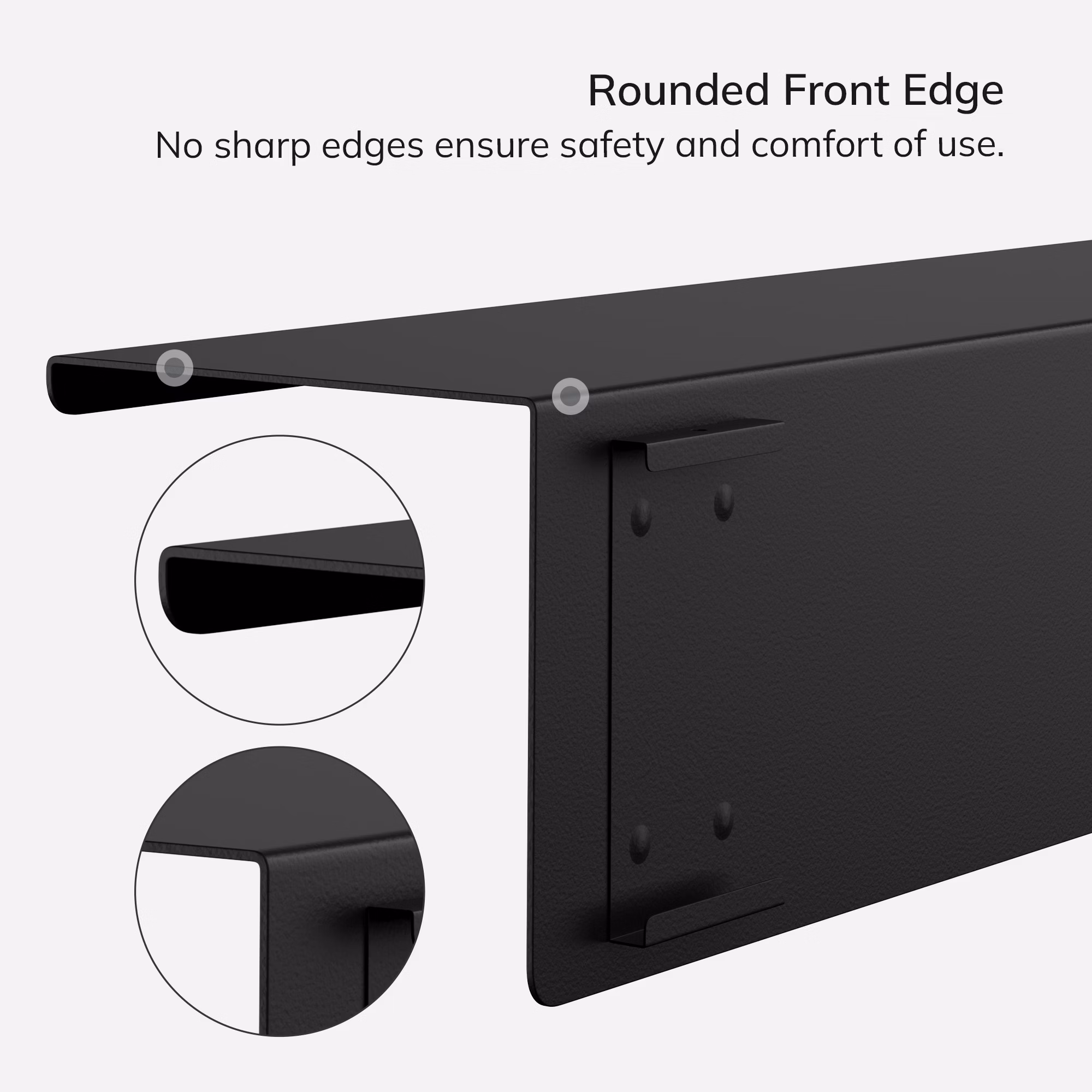 Dankzij het verborgen bevestigingssysteem behoudt de metalen plank een aantrekkelijk uiterlijk zonder zichtbare steunen. De montage is snel en eenvoudig – bevestig gewoon de strip aan de muur en hang de plank eraan. De mogelijkheid om meerdere elementen verticaal of horizontaal te combineren maakt het mogelijk om indrukwekkende sets te creëren, zelfs in kleine ruimtes.