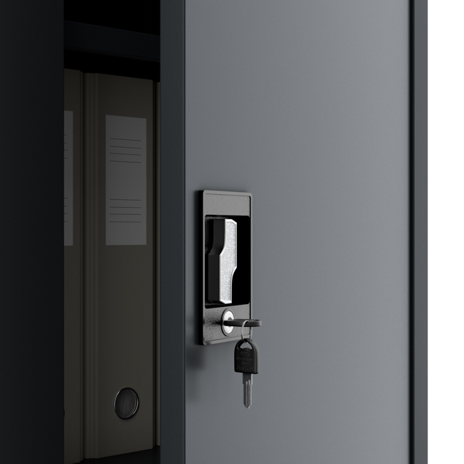 Structura bine gândită a dulapului metalic ALEX îmbunătățește organizarea încăperii și facilitează menținerea ordinii. Cu dulapul ALEX, obțineți un aspect estetic al interiorului și economisiți timp, deoarece toate documentele importante sunt depozitate într-un singur loc. Dulapul din metal este ideal pentru birouri, instituții publice, școli, ateliere, dar și pentru spațiile din locuințe.