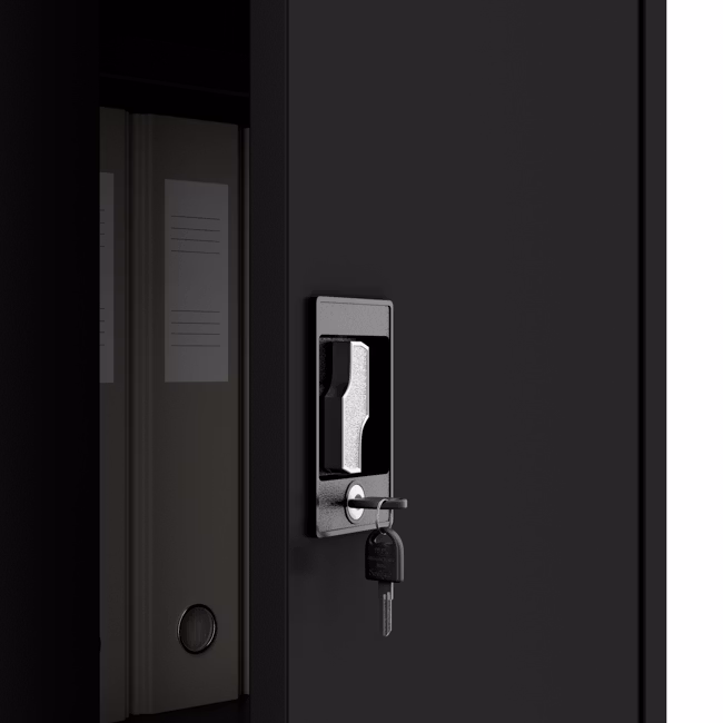 Dulapul metalic ALEX este realizat din oțel rezistent cu o grosime de 0,6 mm, acoperit cu un strat protector de vopsea pulbere. Datorită acestei protecții, dulapul este rezistent la coroziune și zgârieturi, rămânând în stare impecabilă pe parcursul multor ani. Dimensiunile compacte ale dulapului ALEX îl fac ideal pentru birou, instituții publice, școli, ateliere sau alte încăperi unde ordinea și organizarea eficientă sunt esențiale.
