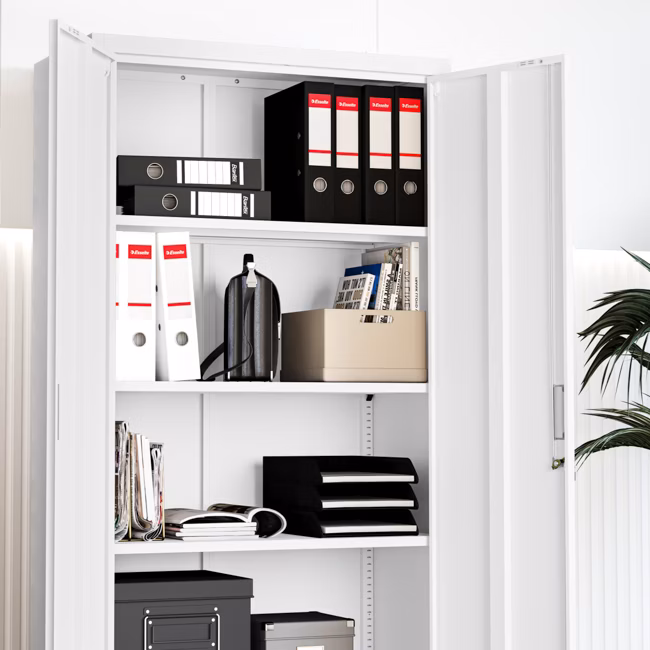 Dulapul metalic JAN Compact este alegerea perfectă pentru spații mici și înguste unde mobilierul standard nu încape. Acest dulap alb compact este ideal pentru birouri mici, spații comune, cămări, holuri sau camere tehnice. Interiorul oferă suficient spațiu pentru documente și obiecte necesare în birou, atelier, cabinet medical sau școală. Acest mobilier funcțional permite gestionarea eficientă a spațiului și menținerea ordinii fără efort.