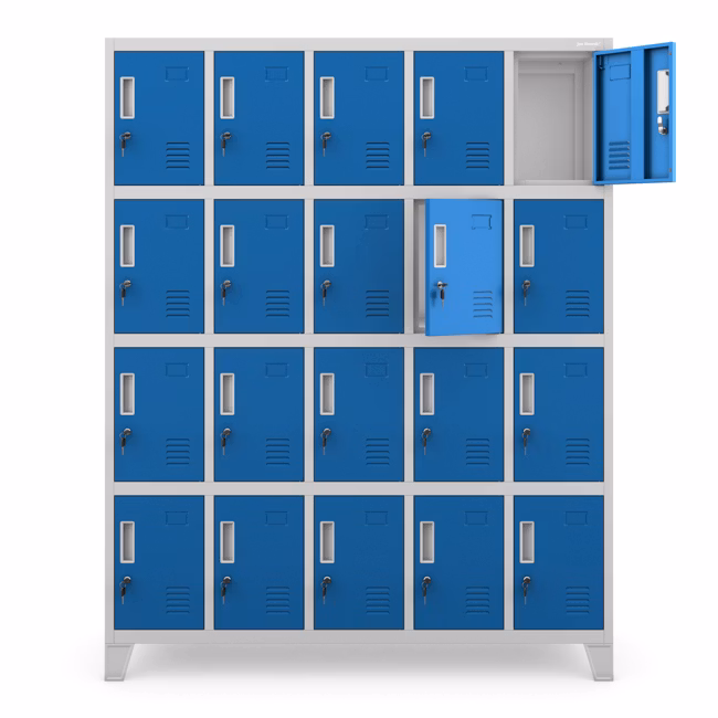O bună organizare a vestiarelor și spațiilor sociale este esențială pentru confortul angajaților și al clienților. Dulapul ROBERT este conceput pentru o utilizare practică și eficientă a spațiului. Datorită dimensiunilor compacte și celor 20 de compartimente individuale, permite depozitarea eficientă a obiectelor personale, fără a ocupa mult spațiu. O soluție ideală pentru vestiarele din companii, școli, săli de sport, hoteluri, centre comerciale sau cabinete medicale.