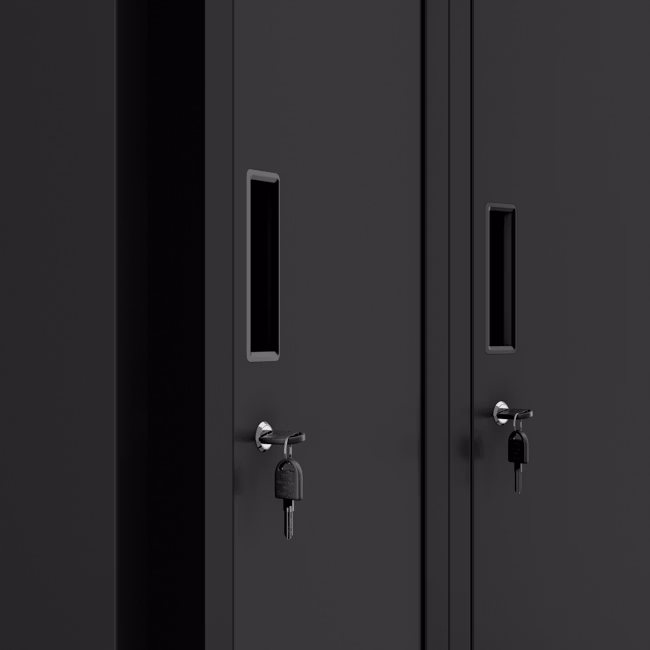 V zamestnaneckých šatniach a fitness kluboch je dobré prúdenie vzduchu mimoriadne dôležité. Špeciálne vetracie otvory v dvierkach skrine KACPER II umožňujú cirkuláciu vzduchu a chránia pred nepríjemnými pachmi. Oblečenie je svieže aj po celom dni v skrinke. Veľkým uľahčením pri usporiadaní miesta v šatni sú držiaky na menovky vo dverách skrinky.