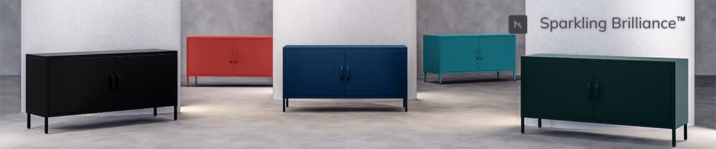 Szafka RTV nowoczesna ROSA powstaje z trwałej stali o grubości 0,6 mm, którą równomiernie pokrywamy solidną warstwą farby Sparkling Brilliance™. To ona sprawia, że mebel nie tylko staje się prawdziwym unikatem na rynku, ale też zyskuje świetną odporność na zarysowania. Szafka RTV na nóżkach ROSA z kolekcji Modern to model, który nigdy nie przestaje zachwycać.