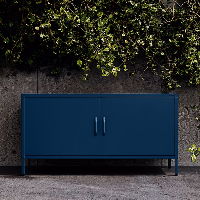 Szafka RTV metalowa na nóżkach granatowa Modern ROSA, 1150 x 595 x 400 mm